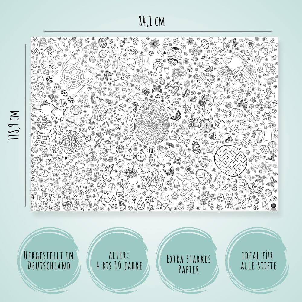 Suchst du noch nach einer stressfreien Aktivität für das Osternest? Diese Tischdecke ist Deko und Spiel in einem! Kombiniere sie doch mit bunten Stiften aus unserem Shop für das ultimative Ostergeschenk, das Kinderaugen zum Leuchten bringt.